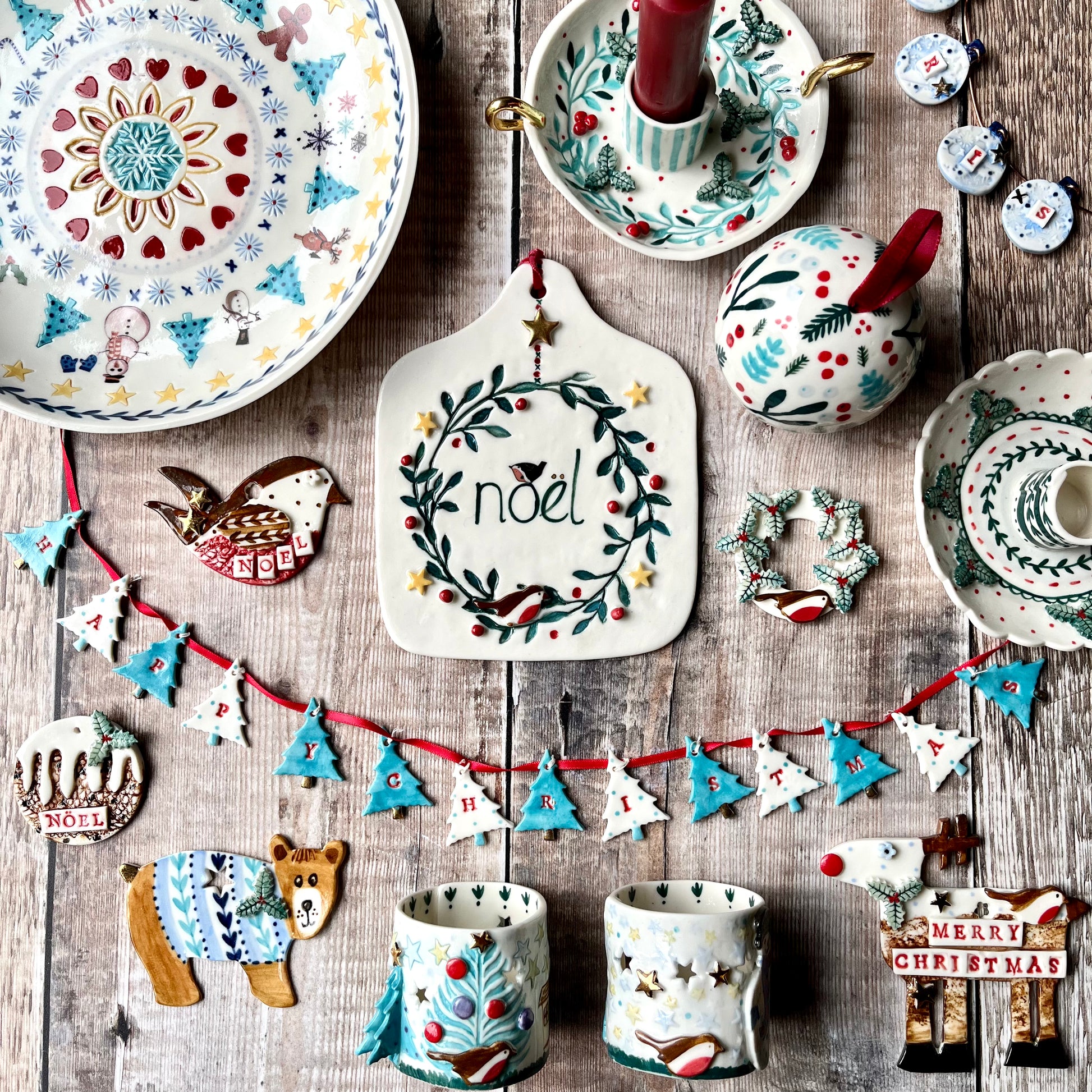 Pretty porcelain hanging garlands to adorn your wall, tree or mantlepiece this Christmas.