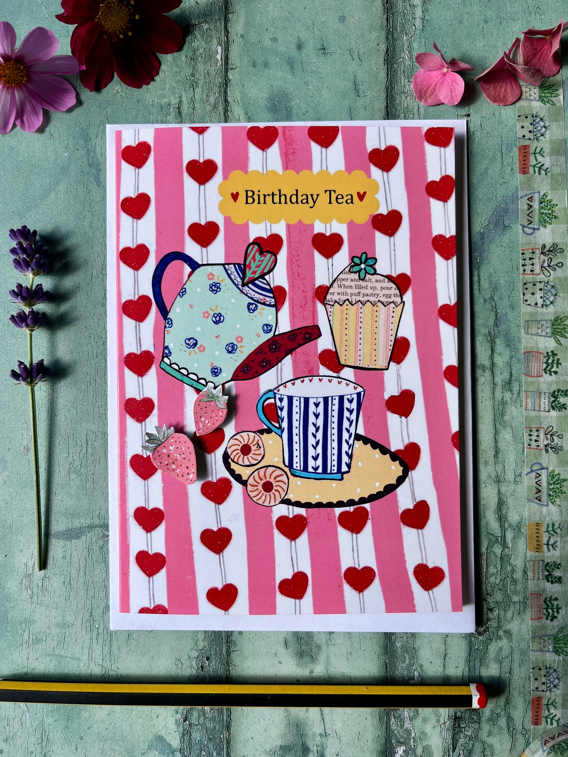Beautiful cards illustrated by me and hand-finished with relief details. All my designs start life as illustrations and I can always be found drawing or collaging with my collections of vintage papers.